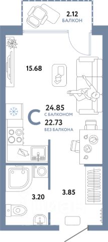 • ✅ Минимальная площадь: 20,5 м²