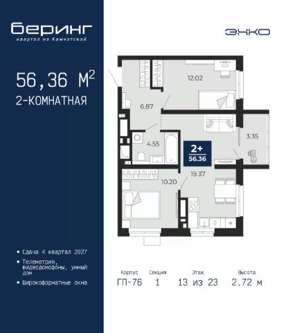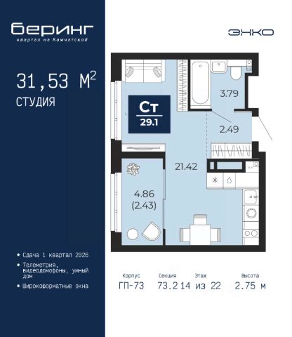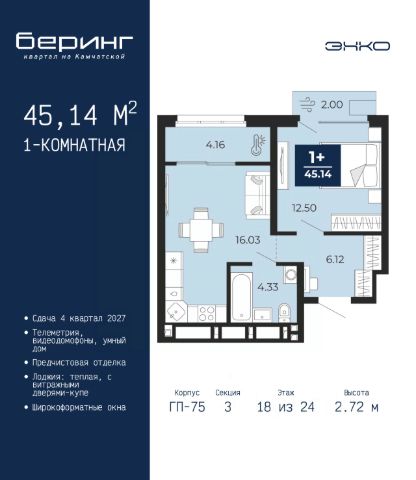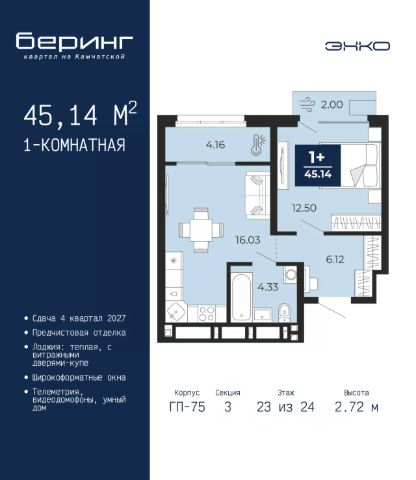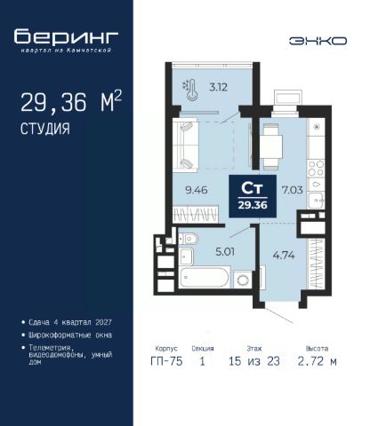 Район Мыс (ул. Тимофея Чаркова / Юрия Рогачева): удобная инфраструктура с паркингами, социальными объектами, безбарьерной средой (нулевой уровень входа, колясочные, велопарковки). Класс комфорта, энергоэффективность А — экономия на коммуналке.