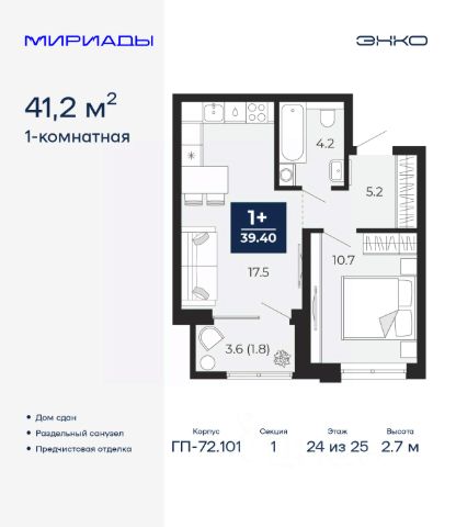 Дом монолитный, многоподъездный, переменной этажности, от 9 до 21 этажей. Квартира находится в 74.1-й секции высотой 21 этаж в корпусе ГП-74. На этаже 5 квартир. В подъезде 1 грузовой лифт. Окончание строительства - 1 квартал 2026 года. Оформление сделки по договору долевого участия.
