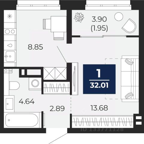 Продается 1-комн. квартира с предчистовой отделкой в ЖК "Беринг" на 6 этаже. Общая площадь: 33.96 кв.м., жилая: 13.68 кв.м., площадь кухни: 8.85 кв.м. Все окна выходят на одну сторону. В квартире одна лоджия, один совмещенный санузел. Высота потолков 2.75 м.