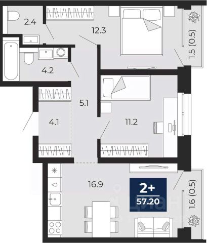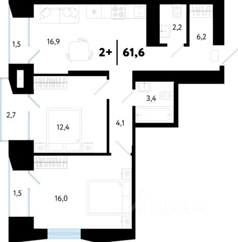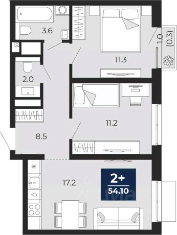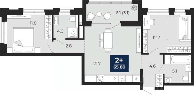 Просторная 2-комн. квартира с предчистовой отделкой в ЖК "Беринг" на 2 этаже. Общая площадь: 66.97 кв.м., жилая: 28.18 кв.м., площадь просторной кухни-столовой: 14.85 кв.м. Квартира - распашонка, без проходных комнат, окна выходят на paзные стороны дома. В квартире одна лоджия, два совмещенных санузла. Высота потолков 2.72 м.