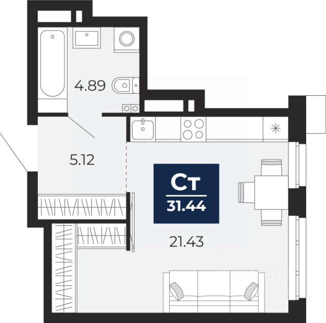 площадь квартиры - 52,2 кв.мГармоничные пропорции и большие окна наполняют пространство светом, создавая уютную атмосферу. Умное зонирование позволяет удобно организовать как рабочую, так и жилую зоны, что особенно важно для современных жителей. Санузел спроектирован с учетом всех потребностей: здесь есть ванна и место для стиральной машины. Каждый метр квартиры используется с максимальной эффективностью, что делает эту планировку отличным выбором для тех, кто ценит комфорт и удобство.
