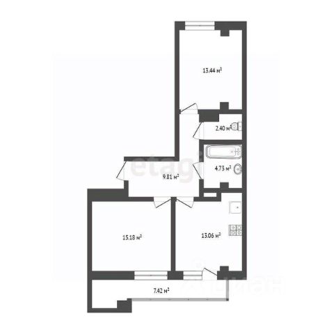 Площадь 42 м² — просторный формат для однокомнатной квартиры