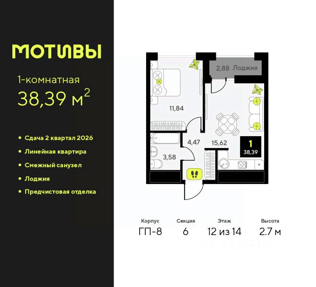 Продаётся квартира площадью 33.2 м2 в жилом комплексе "Дабл-Дабл". Квартира находится на 8 этаже, жилая площадь квартиры 14.1 м2, площадь кухни-ниши — 5.2 м2. Срок сдачи — II кв. 2028 Жилой комплекс "Дабл-Дабл" — это: - проект комфорт-класса на Московском тракте - дома высотой 15 этажей - квартиры от 1-комнатных до 2-уровневых Окружение На границе жилого комплекса — живописный лес. Достаточно открыть окна, чтобы впустить в комнаты ароматы зелени, прохладу и чистый воздух. Благоустройство Юные жители оценят игровые площадки и воркаут-зоны. Любителям неспешных прогулок понравится 2-уровневый променад с панорамным видом и навесами. Лобби Помещения встречают дизайнерскими интерьерами с уютными лаунж-зонами, где удобно подождать курьера или просто сделать паузу перед возвращением домой. Колясочные Возвращайтесь налегке после прогулки с малышом — оставить коляску можно в специальном помещении на первом этаже. Кладовые Благодаря индивидуальным помещениям на техническом этаже сезонные и габаритные вещи будут на своём месте. 2-уровневые квартиры Просторная гостиная и кухня располагаются на первом этаже, спальня и кабинет — на втором. Почувствуйте, как жизнь выходит на новый уровень комфорта и приватности. Панорамное остекление Окна в пол наполняют комнаты светом и стирают границы между домом и природой. Встречайте рассветы или наслаждайтесь огнями вечернего города. Отделка Ровные стены, подготовленные полы и проведённые коммуникации — мы взяли на себя самые грязные и трудоёмкие этапы ремонта. Квартира станет чистым холстом, где легко создать интерьер в любом стиле.