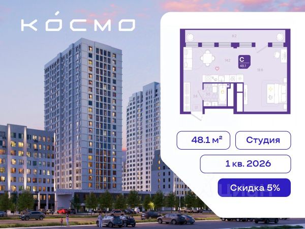Дом монолитный, многоподъездный, переменной этажности, от 13 до 19 этажей. Квартира находится в 6-й секции высотой 19 этажей в корпусе Дом Огня. На этаже 12 квартир. В подъезде 2 пассажирских и 1 грузовой лифт. Окончание строительства - 3 квартал 2027 года. Оформление сделки по договору долевого участия.