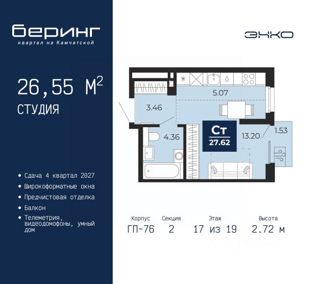 Дом монолитный, многоподъездный, переменной этажности, от 13 до 19 этажей. Квартира находится в 6-й секции высотой 19 этажей в корпусе Дом Огня. На этаже 12 квартир. В подъезде 2 пассажирских и 1 грузовой лифт. Окончание строительства - 3 квартал 2027 года. Оформление сделки по договору долевого участия.