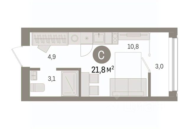 1-комн. квартира-студия от застройщика с предчистовой отделкой в ЖК "Прео" на 12 этаже. Общая площадь: 34.51 кв.м., площадь гостиной 23.87 кв.м., из которых 10 кв.м. выделено под кухонную зону. Все окна выходят на одну сторону. В квартире один балкон, один совмещенный санузел. Высота потолков 2.7 м.