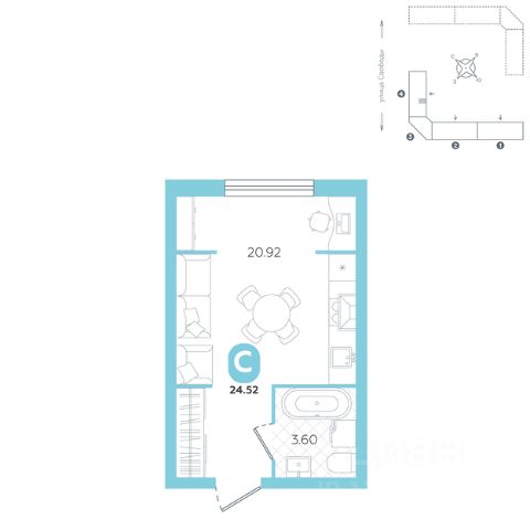 Квартира находится в ЖК "Счастье". Это современный малоэтажный жилой комплекс в окружении березовой рощи. До центра города 10 минут на автомобиле. В 5 минутах езды —роща Декабристов, памятник природы регионального значения Дома расположены по адресу: Тюменская область, г. Ялуторовск, ул. Свободы, 240 и 242. Дома ГП-1 и ГП-2 - сданы. Срок сдачи ГП-3, ГП-4 - 3 квартал 2025-2026 гг. Дворы безопасны и выполнены в концепции Двор без машин- разведены потоки движения транспорта и пешеходов, а парковки удалены от детских площадок. Дворы зонированы по функциям и возрасту жителей, использованы тактильно приятные материалы. Там будет интересно и малышам, и подросткам. Для взрослых спроектированы спортивные зоны и места тихого отдыха. Дома ЖК "Счастье" построены из силикатного блока толщиной 250 мм с применением эффективного утеплителя. Декоративная фасадная штукатурка применяется для облицовки дома способом "мокрый фасад". Квартиры сдаются в улучшенной отделке. Установлены счетчики воды и электроэнергии. Входная дверь - стальная с утеплением и шумоизоляцией. Выполнена цементно-песчаная полусухая стяжка пола, горизонтальная разводка отопления. Выровнены стены и потолки, установлены радиаторы и пластиковые окна. Характеристики квартиры: этаж 1 количество комнат - 1 номер помещения - 116 площадь квартиры - 24,52 кв.м высота потолка - 2,75 м Планировка квартиры отличается продуманностью. Пространство организовано с учетом потребностей каждого члена семьи. В квартире созданы отдельные зоны для отдыха и работы, что способствует рациональному использованию площади. Спальня оформлена для обеспечения комфортного отдыха, а санузел спроектирован с учетом всех необходимых удобств, включая место для хранения хозяйственных принадлежностей. Все зоны оптимально освещены и имеют стандартные размеры для размещения мебели и сантехники. Кухня подойдет не только для приготовления пищи, но и для приема гостей. Застройщик предлагает несколько вариантов ремонта: чистовая отделка, ремонт с кухней, ремонт с мебелью и техникой. Данную услугу можно включить в ежемесячный платеж по ипотеке.