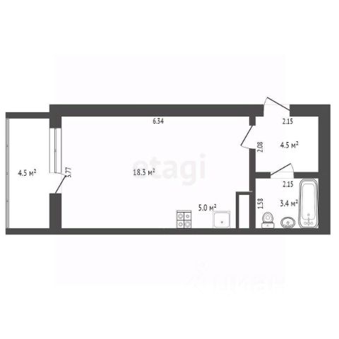 Отличный вариант для тех, кто хочет жить в удобной локации с развитой инфраструктурой и не переплачивать за центр. До ТЦ "Вояж" всего 3 минуты на автомобиле, нужно только переехать мост "Стрела". Пешком дорога займет около 10 минут.