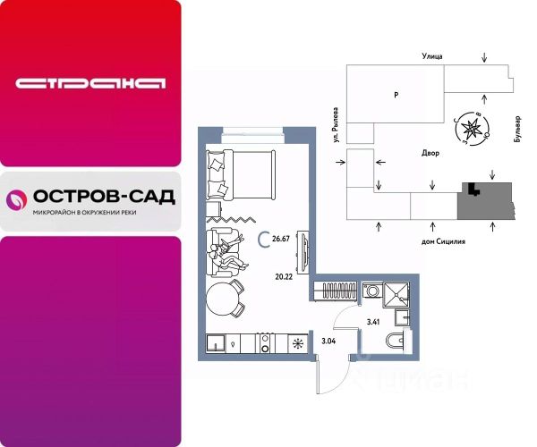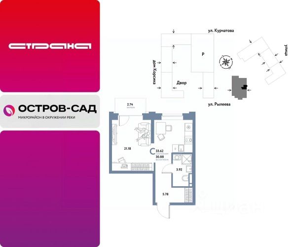 Новая квартира в ЖК "Остров-сад" напрямую от федеральной группы компаний "Страна Девелопмент". Финансовый партнер — Сбербанк России. Продается 1комнатная квартира на 5 этаже от застройщика Страна Девелопмент. Площадь квартиры 20,77 кв. м. ЖК "ОСТРОВ-САД" Жилой комплекс ЖК "Остров-сад" — новый квартал в районе ДОК в Тюмени недалеко от центра. Внутри ЖК планируется несколько школ и детсадов, торговая галерея, своя набережная, закрытые дворы-сады, несколько подземных и многоуровневых паркингов и пешеходный бульвар. Архитектура комплекса отсылает к истории ДОКа — отделка из красного кирпича, акцентные цвета штукатурки и необычная ступенчатая форма зданий. Всё для комфортной жизни на своём "острове" рядом с центром Тюмени. ПРЕИМУЩЕСТВА Квартиры с готовым ремонтом, возможность приобрести квартиру с кухонным гарнитуром и техникой. Развитое жилое пространство — закрытые дворы-сады, свои набережная и бульвар, торговая галерея на 1-м этаже, рядом детсады, школы и поликлиника. Служба охраны и видеонаблюдение в доме и во дворе 24/7. Несколько многоуровневых и подземных паркингов с охраной. ОТДЕЛКА Необходимые работы уже выполнены: подведены холодная, горячая вода и электричество, установлены батареи. В квартире не проводились отделочные работы: не выровнены стены и пол. ДИЗАЙНЕРСКАЯ ОТДЕЛКА В ЖК "Остров-сад" есть квартиры с готовым ремонтом. Пять вариантов на выбор в разных цветовых решениях. В ремонт также включены светильники, межкомнатные двери и даже кондиционер. Можно выбрать отдельно ремонт в ванной, для вас 4 стильных варианта с сантехникой. СПОСОБЫ ПОКУПКИ Сотрудники "Страна Девелопмент" будут сопровождать вас на каждом этапе сделки, помогут получить одобрение по ипотеке или снизить ежемесячный платеж. - ипотека - материнский капитал - 100% оплата наличными