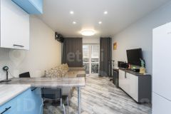 СРОЧНАЯ ПРОДАЖА! Студия с современным ремонтом в жилом комплексе "Кристалл" — это готовое решение для комфортной жизни или выгодного вложения. Квартира полностью укомплектована мебелью и техникой: кухонный гарнитур, холодильник, посудомоечная и стиральная машины, кондиционер — все остается новому владельцу. На кухне установлена вытяжка, при желании можно установить варочную панель. В настоящее время на кухне переносная индукционная. При входе стоит вместительный шкаф для гардероба и встроенные шкафы для хранения мелочевки ( глубина 15см). Отделка выполнена в нейтральных тонах с качественными материалами, что позволяет заселиться сразу после покупки. Теплые полы в санузле, радиатор, большое место для хранения, встроенный тропический душ все новое и выполнено из качественных материалов. Планировка продумана до мелочей: компактная кухонная зона совмещена с гостиной, а спальное место органично вписывается в пространство без ущерба для функциональности.