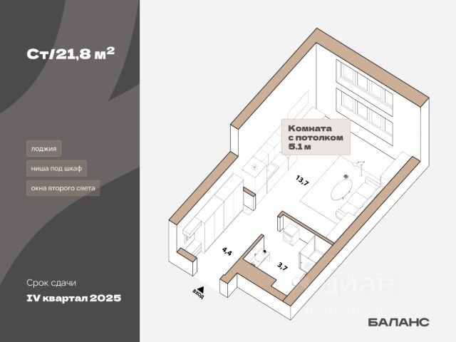 Однокомнатная студия от застройщика с предчистовой отделкой в ЖК "Республики 205" на 14 этаже. Общая площадь: 36.18 кв.м. Высота потолков 2.7 м. Купить квартиру можно с помощью программ покупки от застройщика Брусника: - ипотека по эксклюзивной ставке с помощью в получении положительного кредитного решения через сервис ипотечный брокер; - квартиры в рассрочку без процентов от застройщика Брусника; - обмен квартиры на новую. Получить одобрение ипотеки или рассрочку, а также осуществить обмен квартир можно онлайн. Дом монолитный, многоподъездный, переменной этажности, от 7 до 25 этажей. Квартира находится в 1-й секции высотой 25 этажей в корпусе 3-1. На этаже 8 квартир. В подъезде 2 пассажирских и 1 грузовой лифт. Окончание строительства - 1 квартал 2027 года. Оформление сделки по договору долевого участия. Район Проект расположен в границах улиц Пермякова, Энергетиков, Воровского и Республики. До центра города — 10 минут на машине. Рядом — автомобильная развязка на пересечении улиц Пермякова и Республики. В шаговой доступности есть школы, детские сады, поликлиники, крупный торговый центр, автовокзал и несколько скверов. Проект "Республики 205" — это проект комплексного развития территории, уникальный по своему наполнению. Переосмысляя бывшую территорию завода медицинского оборудования, мы создадим новое место силы — микрорайон, насыщенный деловой, развлекательной, рекреационной, игровой, образовательной и медицинской инфраструктурой. До каждого полезного сервиса здесь можно будет дойти за 15 минут. Локальными центрами "Республики 205" будут общественные пространства — скверы, парки, бульвары и площади. В границах нашего участка мы намерены разместить школу, рассчитанную на 1550 учеников, два детских сада на 300 мест и встроенный детский сад на 100 мест. В одном из цехов бывшего завода расположится креативный кластер "Кузница". Он станет площадкой для нескольких институций — галереи, лектория, книжного магазина-библиотеки, кинобара и точек креативного pop-up-ритейла. Пешеходные бульвары внутри района соединят между собой улицу ресторанов, детские и спортивные площадки, событийную площадь и летний кинотеатр. Идентификатор квартиры по базе застройщика: РСП03. #Zs5wEz