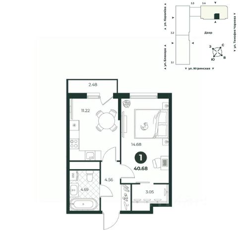 1-комн. квартира с предчистовой отделкой в ЖК "Окинава" на 13 этаже. Общая площадь: 40.4 кв.м., жилая: 12.63 кв.м., площадь просторной кухни-столовой: 14.48 кв.м. Все окна выходят на одну сторону. В квартире один балкон, один совмещенный санузел. Высота потолков 2.7 м. Квартира будет сдана с предчистовой отделкой: на полах стяжка под финишное покрытие, стены подготовлены под покраску или оклейку обоями, разведена вся электрика с подготовкой для установки выключателей и освещения. При желании вы можете заказать отделку под ключ, варианты возможных решений представлены в альбоме фотографий. Дом монолитный, многоподъездный, переменной этажности, от 11 до 19 этажей. Квартира находится в 1-й секции высотой 19 этажей в корпусе Дом Воды. На этаже 5 квартир. В подъезде 1 пассажирский и 1 грузовой лифт. Окончание строительства - 4 квартал 2026 года. Оформление сделки по договору долевого участия. ЖК "Окинава" это не просто жилой комплекс, это остров 4 стихий. Они отражаются во внешнем виде фасадов домов, обустройстве дворов и внутреннем оформлении холлов. Каждая из стихий это отдельный дом. Между домами раскинется большой двухуровневый пешеходный бульвар. Первый уровень прогулочный с местами для отдыха, амфитеатром и фонтанами. На втором уровне расположатся площадки для детей, спортивных игр и тренировок. Квартал будет располагать богатой инфраструктурой: на первых этажах разместятся магазины, пекарни, кофейни, пункты выдачи, аптеки, детские центры, цветочные салоны и многое другое, что сделает жизнь поистине комфортной. В жилом комплексе есть кладовые, а также несколько видов паркинга: уличный гостевой, закрытый теплый и паркинг в стилобате, попасть в который можно на лифте с любого жилого этажа. Дворы в каждом доме отражают его стихию, отличаясь по наполнению. Они дополняют друг друга, образуя единое дворовое пространство жилого комплекса. Закрытая территория, свободная от автомобилей, обеспечит безопасность и спокойный отдых. Холлы оформлены керамогранитом, зеркалами и разноуровневым освещением. Витражные входные группы, мягкие зоны ожидания, видеонаблюдение 24/7, вместительные колясочные и даже лапомойки для питомцев всё это будет в ЖК "Окинава". Жилой комплекс "Окинава" находится в активно развивающемся V заречном микрорайоне, недалеко от озера Алебашево, где в будущем расположится масштабный ивент-парк с зонами отдыха. Удобная транспортная развязка позволит добраться до центра всего за 15 минут. #ZWA9i9