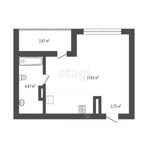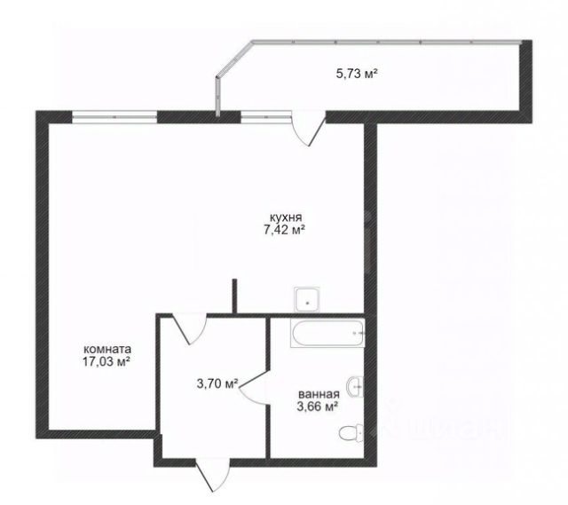 - коридор упирается во вход в кухню, из которой есть второй проход в комнату и на утеплённую лоджию.
