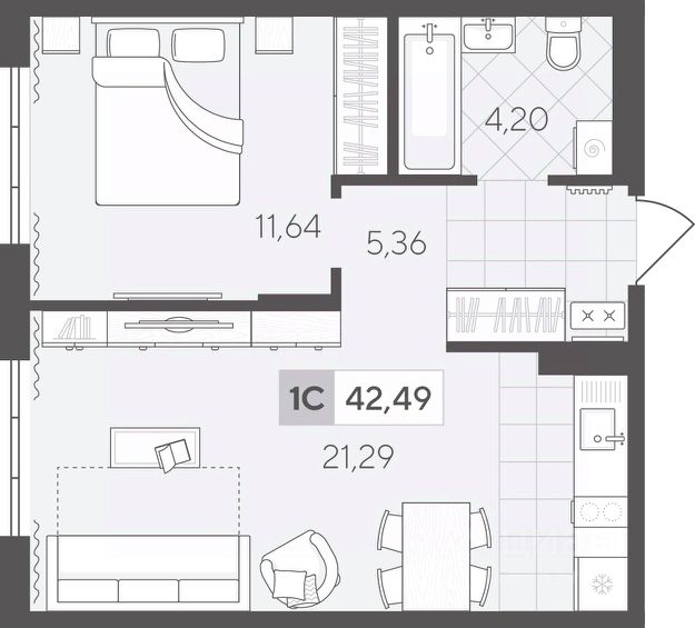 Квартира находится в ЖК "Счастье". Это современный малоэтажный жилой комплекс в окружении березовой рощи. До центра города 10 минут на автомобиле. В 5 минутах езды —роща Декабристов, памятник природы регионального значения Дома расположены по адресу: Тюменская область, г. Ялуторовск, ул. Свободы, 240 и 242. Дома ГП-1 и ГП-2 - сданы. Срок сдачи ГП-3, ГП-4 - 3 квартал 2025-2026 гг. Дворы безопасны и выполнены в концепции Двор без машин- разведены потоки движения транспорта и пешеходов, а парковки удалены от детских площадок. Дворы зонированы по функциям и возрасту жителей, использованы тактильно приятные материалы. Там будет интересно и малышам, и подросткам. Для взрослых спроектированы спортивные зоны и места тихого отдыха. Дома ЖК "Счастье" построены из силикатного блока толщиной 250 мм с применением эффективного утеплителя. Декоративная фасадная штукатурка применяется для облицовки дома способом "мокрый фасад". Квартиры сдаются в улучшенной отделке. Установлены счетчики воды и электроэнергии. Входная дверь - стальная с утеплением и шумоизоляцией. Выполнена цементно-песчаная полусухая стяжка пола, горизонтальная разводка отопления. Выровнены стены и потолки, установлены радиаторы и пластиковые окна. Характеристики квартиры: этаж 2 количество комнат - 1 номер помещения - 134 площадь квартиры - 20,77 кв.м высота потолка - 2,75 м Планировка квартиры отличается продуманностью. Пространство организовано с учетом потребностей каждого члена семьи. В квартире созданы отдельные зоны для отдыха и работы, что способствует рациональному использованию площади. Спальня оформлена для обеспечения комфортного отдыха, а санузел спроектирован с учетом всех необходимых удобств, включая место для хранения хозяйственных принадлежностей. Все зоны оптимально освещены и имеют стандартные размеры для размещения мебели и сантехники. Кухня подойдет не только для приготовления пищи, но и для приема гостей. Застройщик предлагает несколько вариантов ремонта: чистовая отделка, ремонт с кухней, ремонт с мебелью и техникой. Данную услугу можно включить в ежемесячный платеж по ипотеке.