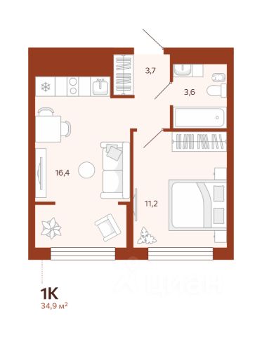 Квартира находится в ЖК "Счастье". Это современный малоэтажный жилой комплекс в окружении березовой рощи. До центра города 10 минут на автомобиле. В 5 минутах езды —роща Декабристов, памятник природы регионального значения Дома расположены по адресу: Тюменская область, г. Ялуторовск, ул. Свободы, 240 и 242. Дома ГП-1 и ГП-2 - сданы. Срок сдачи ГП-3, ГП-4 - 3 квартал 2025-2026 гг. Дворы безопасны и выполнены в концепции Двор без машин- разведены потоки движения транспорта и пешеходов, а парковки удалены от детских площадок. Дворы зонированы по функциям и возрасту жителей, использованы тактильно приятные материалы. Там будет интересно и малышам, и подросткам. Для взрослых спроектированы спортивные зоны и места тихого отдыха. Дома ЖК "Счастье" построены из силикатного блока толщиной 250 мм с применением эффективного утеплителя. Декоративная фасадная штукатурка применяется для облицовки дома способом "мокрый фасад". Квартиры сдаются в улучшенной отделке. Установлены счетчики воды и электроэнергии. Входная дверь - стальная с утеплением и шумоизоляцией. Выполнена цементно-песчаная полусухая стяжка пола, горизонтальная разводка отопления. Выровнены стены и потолки, установлены радиаторы и пластиковые окна. Характеристики квартиры: этаж 2 количество комнат - 1 номер помещения - 134 площадь квартиры - 20,77 кв.м высота потолка - 2,75 м Планировка квартиры отличается продуманностью. Пространство организовано с учетом потребностей каждого члена семьи. В квартире созданы отдельные зоны для отдыха и работы, что способствует рациональному использованию площади. Спальня оформлена для обеспечения комфортного отдыха, а санузел спроектирован с учетом всех необходимых удобств, включая место для хранения хозяйственных принадлежностей. Все зоны оптимально освещены и имеют стандартные размеры для размещения мебели и сантехники. Кухня подойдет не только для приготовления пищи, но и для приема гостей. Застройщик предлагает несколько вариантов ремонта: чистовая отделка, ремонт с кухней, ремонт с мебелью и техникой. Данную услугу можно включить в ежемесячный платеж по ипотеке.
