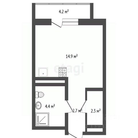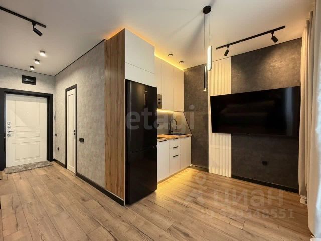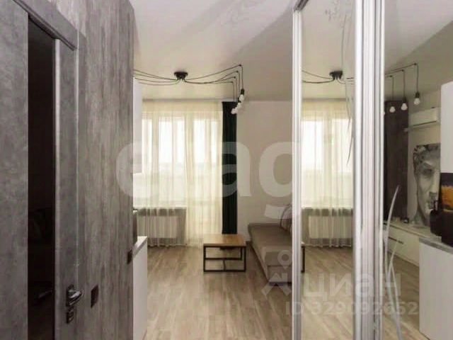 Однокомнатная студия с предчистовой отделкой в ЖК "Республики 205" на 6 этаже. Общая площадь: 19.82 кв.м., площадь гостиной 10.1 кв.м., из которых 5 кв.м. выделено под кухонную зону. Все окна выходят на одну сторону. В квартире один балкон, один совмещенный санузел. Высота потолков 2.6 м.