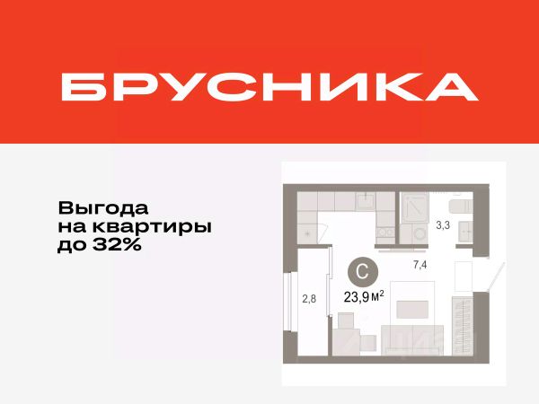 Обмен квартиры на новую. Предложение от застройщика. Эксклюзивные ипотечные условия. Квартира в рассрочку без процентов от застройщика. Дом будет сдан в 4 квартале 2025 года. Квартира в счёт первоначального взноса по программе обмена. Звоните, мы вам все подробно расскажем! Просторная 1-комн. студия с предчистовой отделкой в ЖК "Республики 205" на 9 этаже. Общая площадь: 32.1 кв.м., площадь гостиной 21.8 кв.м., из которых 5 кв.м. выделено под кухонную зону. Все окна выходят на одну сторону. В квартире одна лоджия, один совмещенный санузел. Высота потолков 2.6 м. Купить квартиру можно с помощью программ покупки от застройщика Брусника: - ипотека по эксклюзивной ставке с помощью в получении положительного кредитного решения через сервис ипотечный брокер; - квартиры в рассрочку без процентов от застройщика Брусника; - обмен квартиры на новую. Получить одобрение ипотеки или рассрочку, а также осуществить обмен квартир можно онлайн. Дом монолитный, многоподъездный, переменной этажности, от 9 до 17 этажей. Квартира находится в 10-й секции высотой 9 этажей в корпусе 1. На этаже 6 квартир. В подъезде 1 грузовой лифт. Начало строительства - 2 квартал 2023 года. Окончание строительства - 4 квартал 2025 года. Оформление сделки по договору долевого участия. Район Проект расположен в границах улиц Пермякова, Энергетиков, Воровского и Республики. До центра города — 10 минут на машине. Рядом — автомобильная развязка на пересечении улиц Пермякова и Республики. В шаговой доступности есть школы, детские сады, поликлиники, крупный торговый центр, автовокзал и несколько скверов. Проект "Республики 205" — это проект комплексного развития территории, уникальный по своему наполнению. Переосмысляя бывшую территорию завода медицинского оборудования, мы создадим новое место силы — микрорайон, насыщенный деловой, развлекательной, рекреационной, игровой, образовательной и медицинской инфраструктурой. До каждого полезного сервиса здесь можно будет дойти за 15 минут. Локальными центрами "Республики 205" будут общественные пространства — скверы, парки, бульвары и площади. В границах нашего участка мы намерены разместить школу, рассчитанную на 1550 учеников, два детских сада на 300 мест и встроенный детский сад на 100 мест. В одном из цехов бывшего завода расположится креативный кластер "Кузница". Он станет площадкой для нескольких институций — галереи, лектория, книжного магазина-библиотеки, кинобара и точек креативного pop-up-ритейла. Пешеходные бульвары внутри района соединят между собой улицу ресторанов, детские и спортивные площадки, событийную площадь и летний кинотеатр. Идентификатор квартиры по базе застройщика: МЕД01-01-10-10. #2udoZu Квартира-студия с лоджией в Тюмени.