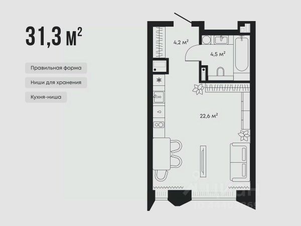 1-комн. квартира-студия с предчистовой отделкой в ЖК "Айвазовский City" на 10 этаже. Общая площадь: 26.8 кв.м., площадь гостиной 17.1 кв.м., из которых 6.7 кв.м. выделено под кухонную зону. Все окна выходят на одну сторону. В квартире одна лоджия, один совмещенный санузел. Высота потолков 2.72 м. Дом монолитный, многоподъездный, переменной этажности, от 9 до 24 этажей. Квартира находится в 1-й секции высотой 24 этажа в корпусе ГП-7. На этаже 6 квартир. В подъезде 1 пассажирский и 2 грузовых лифта. Окончание строительства - 3 квартал 2026 года. Оформление сделки по договору долевого участия. Новый жилой район располагается в живописном месте на берегу Туры в центральной части города. Принципиально новое пространство для жизни в центре современного города для тех, чьи мечты сбываются, кто нацелен на постоянный рост, перемены к лучшему для себя и своих близких. Каждая деталь Айвазовский City вдохновляет и заряжает на новые свершения: авторская архитектура, сбалансированная продуманная инфраструктура, дизайнерские дворы со спортивными и детскими площадками, парковые зоны с фонтанами, водный канал, украшающий центральный прогулочный маршрут района и многое другое. В 2019 года проект стал лауреатом престижной премии Urban Awards 2019 в номинации "Лучший строящийся региональный жилой комплекс бизнес-класса". Главная особенность Айвазовский City - соседство разных архитектурных школ в рамках одного дома. Изысканная классика, выразительная эклектика и оригинальный модерн - жить в одном из таких домов настоящий повод для гордости. Айвазовский City это идеальное сочетание комфорта, технологий и развитой инфраструктуры. Вход в подъезд возможен с улицы и со двора. Отправляясь на работу или за покупками, жители могут выйти с внешней стороны дома, а для прогулки с ребенком со стороны двора. Экологически чистые материалы и энергосберегающие технологии, качественное освещение общественных зон, видеонаблюдение по всей территории жилого района (в том числе в подъездах, лифтах и в подземном паркинге), закрытые дворы с доступом только для жителей Айвазовский City. Часть домов в Айвазовский City будут оснащены подземным паркингом. Востребованный в нашем климатическом поясе формат хранения автомобилей защитит собственность владельца в любое время года. Аккредитация в банках: "Сбербанк России", ОАО "Альфа-Банк", ПАО Банк "ВТБ", ПАО "Газпромбанк", ПАО АКБ "Абсолют Банк" и других. #25es6o Купить квартиру-студию в округе Центральный в городе Тюмень.