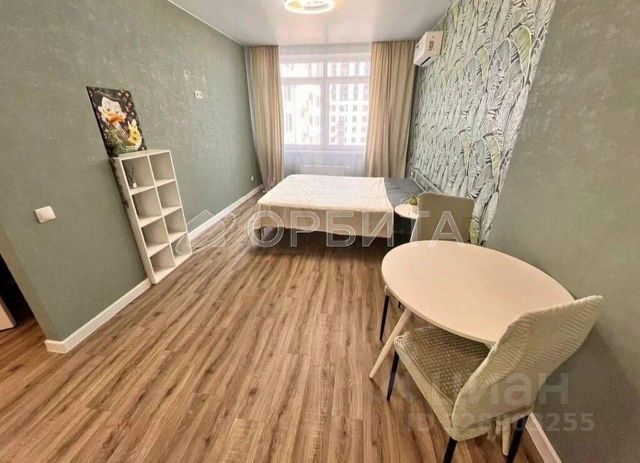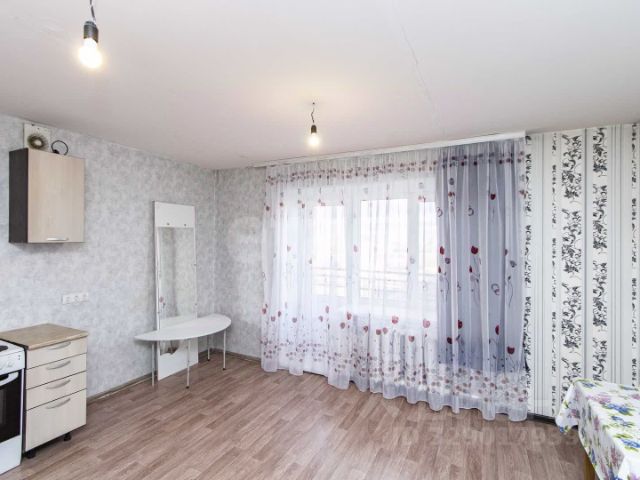 Квартира, площадью 25м2 расположена на третьем этаже 25 этажного дома. Окна выходят во двор на восток. Сделан современный ремонт в светлых тонах: обои под покраску, ламинат в комнате, натяжные потолки, санузел выложен из керамогранита. Остается мебель и техника: кухонный гарнитур, стол, стулья, диван, встроенный шкаф в прихожей, холодильник, микроволновая печь.