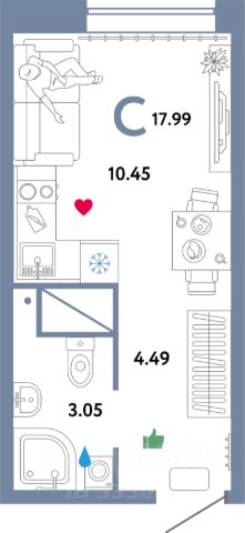 Продаётся студия в сданном доме (Интернациональная, 199к9 (ГП-1 Дом Синергия)), срок сдачи: I-кв. 2025, общей площадью 17.99 кв.м., на 15 этаже. Жилой комплекс "Юнион" - многоэтажные жилые дома с объектами инфраструктуры в границах улиц Интернациональная, Объездная дорога г. Тюмень от застройщика ГК Страна Девелопмент.