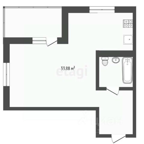 2. общая площадь 27,9м2 с удобной планировкой, с отдельными зонами под кухню, спальню, гардеробную, для занятий;