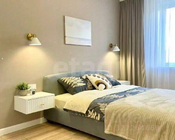 Спальня — светлая комната с правильной геометрией.