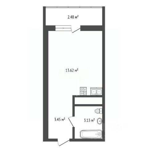 Квартира общей площадью 65,7 кв.м. с продуманным зонированием: