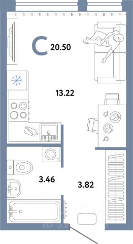 • ✅ Минимальная площадь: 17,6 м²