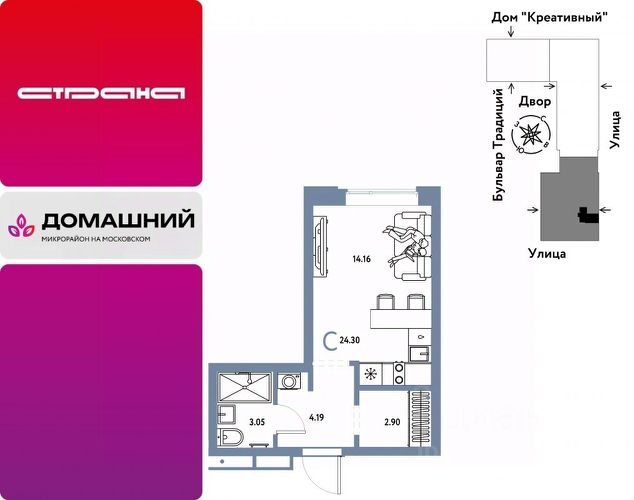 Новая квартира в ЖК "Домашний" напрямую от федеральной группы компаний "Страна Девелопмент". Финансовый партнер — банк "ДОМ.РФ". Продается 1комнатная квартира на 9 этаже от застройщика Страна Девелопмент. Площадь квартиры 30,99 кв. м. ЖК "ДОМАШНИЙ" Жилой комплекс "Домашний" это первый цифровой район в Сибири, где жители заходят в парадные по Face ID, автомобили заезжают в паркинг по сканированию номера, а лифт автоматически спускается на первый этаж при открытии домофона. Даже во дворах — USB-розетки и беседки с подогревом. ПРЕИМУЩЕСТВА -Школа, зеленый сквер и пешеходный бульвар прямо внутри квартала -Закрытые дворы у каждого дома для активного и спокойного отдыха -Охрана, видеонаблюдение 24/7 и доступ к камерам в мобильном приложении -Сквозные парадные с прозрачными входными группами, колясочными и велосипедными -Паркинг с въездом по считыванию номеров, системой контроля выбросов CO2, тележками для покупок и велопарковкой -Торговая галерея на первом этаже дома ОТДЕЛКА Квартиры сдаются с предчистовой отделкой: произведена разводка электричества и отопления, выполнена стяжка пола, стены выровнены "под маяк", установлены розетки, выключатели и радиаторы. ДИЗАЙНЕРСКАЯ ОТДЕЛКА При покупке квартиры в ЖК "Домашний" можно включить стоимость ремонта в ипотеку. Пять вариантов на выбор: Хлопковая нить, Серый шторм, Белый камень, Шалфей, Голубой вереск. СПОСОБЫ ПОКУПКИ Сотрудники "Страна Девелопмент" будут сопровождать вас на каждом этапе сделки, помогут получить одобрение по ипотеке или снизить ежемесячный платеж. - ипотека - материнский капитал -100% оплата наличными