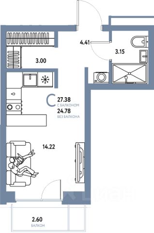 Продаётся студия в строящемся доме (Дом "Инновационный" (ГП-24)), срок сдачи: IV-кв. 2026, общей площадью 29.18 кв.м., на 15 этаже. Новый микрорайон "Домашний" от группы компаний "Страна Девелопмент" расположен в Калининском округе Тюмени, в районе аэропорта "Плеханово".