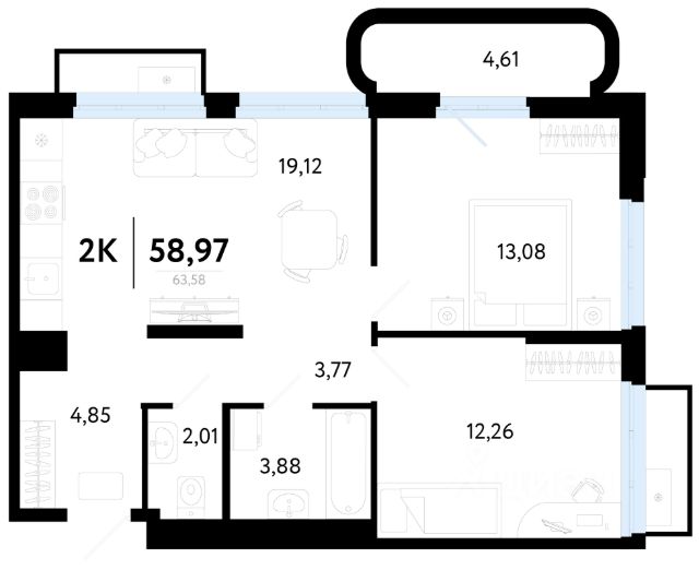 Дом монолитный, трехподъездный, переменной этажности, от 14 до 22 этажей. Квартира находится во 2-й секции высотой 22 этажа в корпусе 208. На этаже 10 квартир. В подъезде 1 пассажирский и 1 грузовой лифт. Строительство окончено, дом сдан в 1 квартале 2026 года. Оформление сделки по договору купли-продажи.