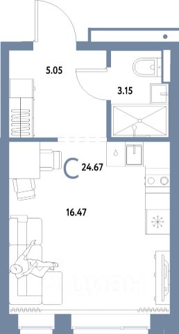 Продаётся студия в сданном доме ( Новосёлов, 100 (Дом "Архитектурный" ГП-14)), срок сдачи: I-кв. 2026, общей площадью 23.09 кв.м., на 4 этаже. Новый микрорайон "Домашний" от группы компаний "Страна Девелопмент" расположен в Калининском округе Тюмени, в районе аэропорта "Плеханово".