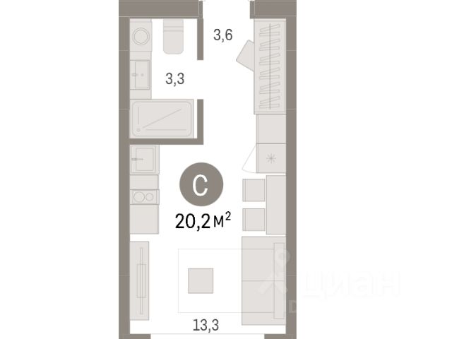 Квартира в рассрочку без процентов от застройщика. Эксклюзивные ипотечные условия. Дом будет сдан в 4 квартале 2025 года. Звоните, наши менеджеры вам все расскажут! Просторная однокомнатная студия с предчистовой отделкой в ЖК "Республики 205" на 6 этаже. Общая площадь: 19.82 кв.м., площадь гостиной 10.1 кв.м., из которых 5 кв.м. выделено под кухонную зону. Все окна выходят на одну сторону. В квартире один балкон, один совмещенный санузел. Высота потолков 2.6 м. Купить квартиру можно с помощью программ покупки от застройщика Брусника: - ипотека по эксклюзивной ставке с помощью в получении положительного кредитного решения через сервис ипотечный брокер; - квартиры в рассрочку без процентов от застройщика Брусника; - обмен квартиры на новую. Получить одобрение ипотеки или рассрочку, а также осуществить обмен квартир можно онлайн. Дом монолитный, многоподъездный, переменной этажности, от 9 до 17 этажей. Квартира находится в 5-й секции высотой 9 этажей в корпусе 1. На этаже 6 квартир. В подъезде 1 грузовой лифт. Начало строительства - 2 квартал 2023 года. На сегодняшний день строительство завершено, дом сдан в 4 квартале 2025 года. Оформление сделки по договору купли-продажи. Район Проект расположен в границах улиц Пермякова, Энергетиков, Воровского и Республики. До центра города — 10 минут на машине. Рядом — автомобильная развязка на пересечении улиц Пермякова и Республики. В шаговой доступности есть школы, детские сады, поликлиники, крупный торговый центр, автовокзал и несколько скверов. Проект "Республики 205" — это проект комплексного развития территории, уникальный по своему наполнению. Переосмысляя бывшую территорию завода медицинского оборудования, мы создадим новое место силы — микрорайон, насыщенный деловой, развлекательной, рекреационной, игровой, образовательной и медицинской инфраструктурой. До каждого полезного сервиса здесь можно будет дойти за 15 минут. Локальными центрами "Республики 205" будут общественные пространства — скверы, парки, бульвары и площади. В границах нашего участка мы намерены разместить школу, рассчитанную на 1550 учеников, два детских сада на 300 мест и встроенный детский сад на 100 мест. В одном из цехов бывшего завода расположится креативный кластер "Кузница". Он станет площадкой для нескольких институций — галереи, лектория, книжного магазина-библиотеки, кинобара и точек креативного pop-up-ритейла. Пешеходные бульвары внутри района соединят между собой улицу ресторанов, детские и спортивные площадки, событийную площадь и летний кинотеатр. Идентификатор квартиры по базе застройщика: МЕД01-01-5-5. #ZMgu5a Купить квартиру-студию на улице Республики в городе Тюмень.