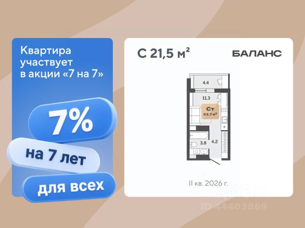 Условия покупки для этой квартиры: Cтавка 7% для всех. Срок ставки 7 лет. Ежемесячный платеж 24 878 руб. в месяц. Первоначальный взнос 20% или 935 438 руб Студия площадью 21,8 м² Студия с увеличенным окном — оно шире на 16%, чтобы впустить в квартиру больше света. Для одежды в прихожей ниша под шкафы. В квартире предчистовая отделка: стены оштукатурены и выровнены по общему уровню, на полу слой цементно-песчаного раствора с дополнительным гидроизоляционным слоем в ванной. Проведена электрика и готовы розетки с выключателями. А ещё установлены сейф-двери и счётчики с телеметрией. Квартал построен на улице Республики. Сдача в 2026 году. В районе развитая инфраструктура. Вокруг много школ и детских садов, есть качественные клиники и большой парк для прогулок. В закрытых дворах без машин детские и спортивные площадки в окружении озеленения растениями, подходящими по климату. Чтобы было безопасно, по периметру домов работает видеонаблюдение. Для машин продуман многоуровневый паркинг рядом с домом. ЖК построил ПСК Дом девелопмент — застройщик с фокусом на развитие Тюмени с 26-летним опытом на рынке недвижимости. Способы покупки: — ипотечные программы — обмен вашего жилья на новую квартиру — дистанционная покупка — рассрочка Узнать дополнительную информацию и записаться на встречу в офисе продаж можно по номеру, указанному в объявлении. Купить квартиру-студию на улице Республики в городе Тюмень.