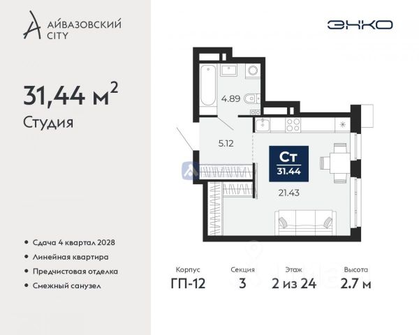 ЖК Этика - культурные кварталы рядом с Алебашевским озером и тремя парками. Новый проект застройщика "ТИС" на пересечении улиц Алебашевская и Тимофея Кармацких. Расположение Жилой комплекс расположен на левом берегу Туры, в прибрежной зоне озера Алебашево. Всего 10 минут на автомобиле и вы в самом центре города. Рядом, на улице Тимофея Кармацкого, расположен современный гастрорынок "Алебашевский Базар", через дорогу ТЦ "Зеленый берег" с гипермаркетом "Лента". Здесь много возможностей для прогулок: в 900 метрах от ЖК - Парк дружбы между Россией и Республикой Корея, в 5 минутах езды на автомобиле Ватутинская роща и Гагаринский парк. Модная эко-локация ЖК расположен в уникальном месте, инфраструктура района вполне может посоперничать с центром. Все что нужно для повседневного комфорта жителей: аптеки, фитнес-клубы, уютные студии йоги, гастропабы и супермаркеты - находится в пешей доступности. Район с особой, редкой в мегаполисе экосистемой - рядом сразу с тремя водными объектами: Алебашевским озером, озером Круглое и рекой Турой. В 5 минутах езды на авто - лесопарк имени Гагарина. На площади в 105 га прорастают около 200 видов редких растений и обитает более 70 видов птиц, поэтому парк стал памятником природы регионального значения. "Зеленый каркас" Жилой район спроектирован по принципу квартальной застройки. Между собой кварталы соединяет "зеленый каркас" - пешеходная аллея, пронизывающей всю территорию ЖК. Мы планируем засадить ее взрослыми деревьями, разбить газоны и цветники. Бульвар в центре ЖК В центральной части комплекса на площади 1,65 га мы обустроим бульвар с ландшафтным озеленением. Здесь разместятся арт-объекты, разнообразные зоны для игр и отдыха, качели и шезлонги. Бульвар станет центром притяжения для всего района. Дворовое пространство Организовано по принципу безбарьерной среды, свободной от машин. Все площадки для шумных командных игр также вынесены за пределы двора. Игровые зоны спланированы так, чтобы удобно было и детям, и родителям. Качели, песочницы и разнообразные спортивные зоны хорошо просматриваются, но расположены на достаточном расстоянии, и юные жители в разгар игр не помешают взрослым. В центре двора в первом квартале мы обустроим мини-площадь с живой елью. Эргономичные планировки При проектировании мы использовали лучшие решения, проверенные в других наших проектах + добавили новые трендовые элементы. Например, есть лоты с отдельным входом и террасами, с окном в ванной или панорамным остеклением. В квартирах от двух комнат спланированы мастер-спальни с собственным санузлом и гардеробной. Также в многокомнатных квартирах есть возможность разделить пространство на гостевую и приватную зоны. Сдача 1 очереди - II квартал 2026 года Сдача 2 очереди - IV квартал 2026 года Продам квартиру-студию на улице Тимофея Кармацкого в городе Тюмень.