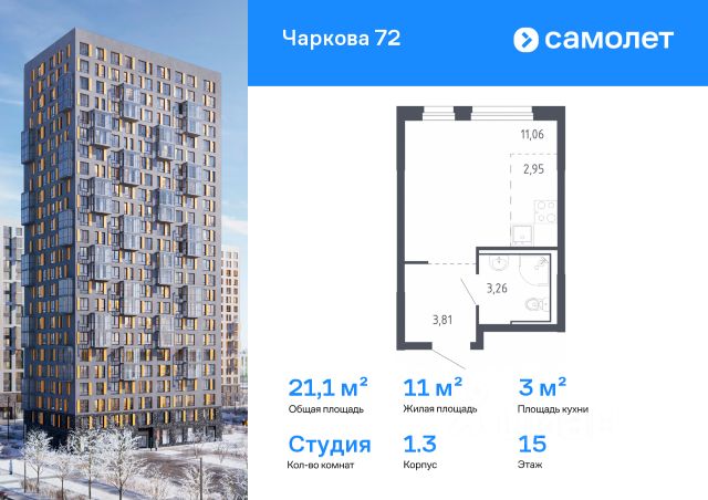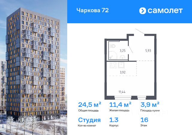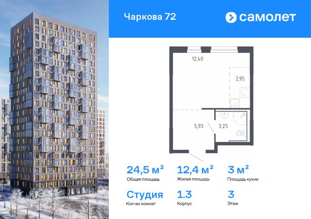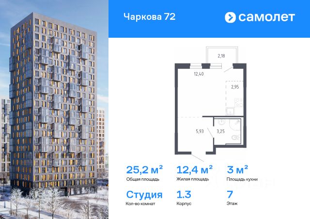 Строим кварталы для жизни с заботой о будущем. Предлагается квартира студия комфорт-класса 24,54 кв.м в корпусе 1.3 на 14 этаже, в ЖК "Чаркова 72" Квартира с предчистовой отделкой. Доступность дополнительных опций уточняйте у застройщика. Приобрести квартиру возможно по специальным акциям от застройщика, с текущими условиями акций можно ознакомиться в блоке "Акций". Цена динамическая и может отличаться, уточняйте актуальность у застройщика. Идеальное сочетание городского комфорта и размеренной жизни — квартал "Чаркова 72" на северо-востоке города. В дизайне 17-24-этажных домов с панорамными балконами нашли отражение нотки сибирской природы. От "Чаркова 72" удобно добираться до центра города — всего 17 минут пути. А в 2 минутах от дома находится Тобольский тракт. Для семейного отдыха отлично подойдет парк Гагарина — он находится в 7 минутах от квартала. В закрытых дворах тихо и уютно — все авто остались на одном из 4 многоуровневых паркингов, которые находятся за территорией квартала. Можно спокойно гулять по бульвару и заниматься йогой на спортивной площадке. На первых этажах домов — кафе и магазины. Рядом с проектом — детские сады и школы, городская поликлиника и МФЦ. Во всех квартирах есть выводы под кондиционеры, на подземных этажах — индивидуальные кладовые, на первых — места для хранения велосипедов и колясок. В квартирах можно выбрать варианты отделки: чистовая, черновая и улучшенная из материалов повышенного класса.