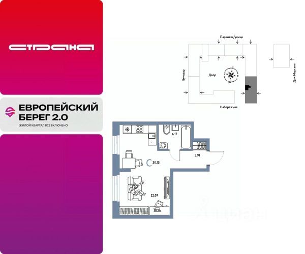 Продается однокомнатная студия с предчистовой отделкой в ЖК "Зарека" на 6 этаже. Общая площадь: 33.38 кв.м., площадь гостиной 19.6 кв.м., из которых 5 кв.м. выделено под кухонную зону. Все окна выходят на одну сторону. В квартире один балкон, один совмещенный санузел. Высота потолков 2.7 м. Квартира находится в корпусе 5-1. Дом монолитный, одноподъездный, высотой 25 этажей. На этаже 12 квартир. В подъезде 2 пассажирских и 1 грузовой лифт. Окончание строительства - 1 квартал 2027 года. Оформление сделки по договору долевого участия. Студия в жилом районе "Зарека". Особенности планировки: балкон, предчистовая отделка. квартиры в нашей базе: ЗРК05.1-Ж1.6.10. Проект На планировочную структуру "Зареки" повлияла близость к автомобильному мосту Челюскинцев. Мы расположили жилые здания так, чтобы они постепенно удалялись от проезжей части. Приём напоминает лесенку: чем сильнее мост возвышается над участком застройки, тем дальше по отношению к нему стоят дома. Этот ступенчатый сдвиг позволил нам сформировать буфер между кварталами и оживлённой магистралью. Мы намерены высадить здесь высокие деревья и создать дополнительную защиту от дорожных шума и пыли. В границах нашего участка мы намерены разместить школу и два встроенных детских сада на 135 и 150 мест. Общественные пространства С севера на юг территорию будет пронизывать пешеходный бульвар. Мы мыслим это общественное пространство как главный центр притяжения. На нём будут сосредоточены основные детские игровые и спортивные зоны, места для встреч и спокойного отдыха. Он также сыграет роль мостика, ведущего к другим нашим проектам — "Европейскому кварталу" и "Дому у озера". Одна из базовых идей мастер-плана касается береговой линии. Сегодня озеленение этой территории носит стихииныи характер, а прямому доступу к Туре препятствует дамба. Мы хотим благоустроить пространства у воды и открыть их для людей. Архитекторы спроектировали систему многоярусных троп и спусков к реке, смотровые площадки и места для активного отдыха и пикников. #zs9b8c Квартира-студия в микрорайоне Зарека в городе Тюмень.