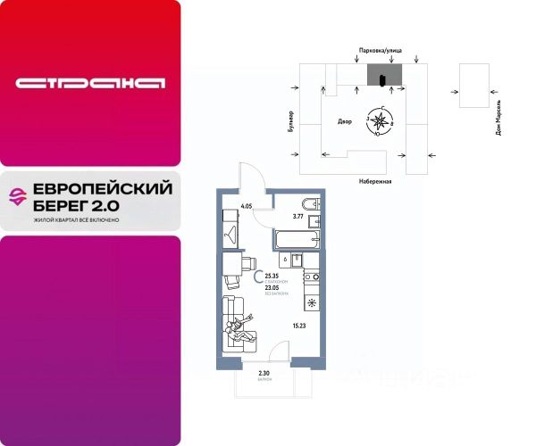 Объявление от застройщика Страна Девелопмент. Покупка квартиры защищена банком. Продается 1комнатная квартира на 6 этаже от застройщика Страна Девелопмент. Площадь квартиры 22,43 кв. м. Стоимость указана без учета акций. Европейский берег 2.0. — это продолжение легендарного жилого комплекса Европейский берег. Он включает все, что нужно для жизни, и даже больше. Этот квартал для тех, кто не готов тратить время на ненужное, жертвовать одним ради другого. Для тех, кто хочет получить все и сразу. Именно поэтому генеральная идея проекта — жилой квартал все включено. Все преимущества включены. Никаких исключений. ПРЕИМУЩЕСТВА Разнообразие планировок: от классических до квартир с мастер-спальней и террасами. Подземный паркинг с кладовыми, охраной и видеонаблюдением 24/7. Ремонт от застройщика: 5 вариантов на выбор. Закрытый двор с площадками и зонами отдыха: мост-акведук, тренажёры, лабиринты, гамаки и шезлонги. ОТДЕЛКА Базовая отделка или готовый ремонт от застройщика. В базовой отделке все черновые работы выполнены, подведены коммуникации, стены оштукатурены под маяк. В ремонт от застройщика входит 5 вариантов отделки, уже включено всё необходимое: от сантехники до кондиционера. СПОСОБЫ ПОКУПКИ Сотрудники "Страны Девелопмент" будут сопровождать вас на каждом этапе сделки, помогут получить одобрение по ипотеке или снизить ежемесячный платеж. - ипотека - материнский капитал - 100% оплата наличными - рассрочка - обмен — это выкуп вашей старой квартиры и зачисление полученных денежных средств в счет стоимости новой квартиры или в качестве первоначального взноса по ипотеке.