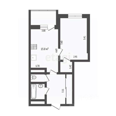 Удобная площадь 44,1 м² оптимальное пространство для одного человека или пары. Всё продумано до мелочей!