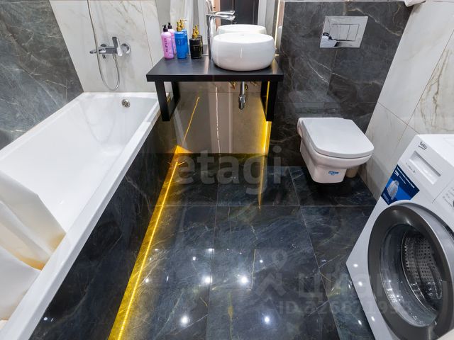 В квартире качественный ремонт: керамогранит, дорогая сантехника,отделанный балкон,натяжной потолок+много светильников,18 розеток,даже есть подсветка на потолке для нежной передачи цвета красивых штор.