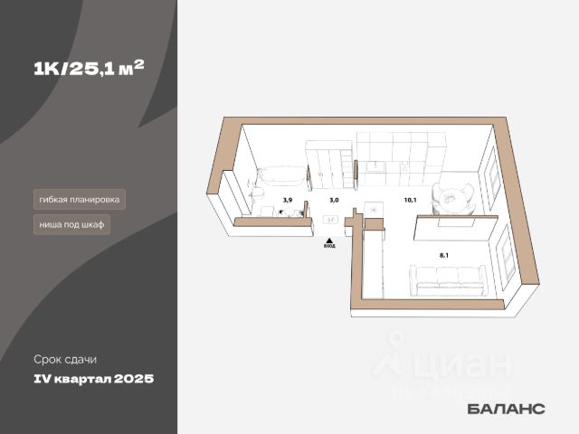 Предлагается к покупке самая лучшая квартира-студия площадью 27,9 кв.м. с отдельной гардеробной в ЖК "Республика 205" от застройщика "Брусника! СТОИМОСТЬ ЦЕНЫ - НИЖЕ ЦЕНЫ ЗАСТРОЙЩИКА (по цене покупки на старте продаж)! О КВАРТИРЕ: Квартира 27,9кв.м расположена на 8-м этаже 9 этажной секции. В квартире имеется балкон и гардеробная площадью 3,5кв.м., что для студии является редкостью! Квартира будет сдаваться застройщиком в предчистовой отделке: стены - гипсовая штукатурка под маяки, полы - стяжка из ц/п раствора; окна панорамные с двухкамерным стеклопакетом; установка входной двери увеличенной высоты; установка радиаторов отопления; электроразводка; установка выключателей и электророзеток; установка приборов учета тепла, воды и электроэнергии. О ДОМЕ: Квартира расположена в доме 3, который по своим параметрам будет намного прогрессивней других домов данного проекта (Дом класса "Комфорт+")! Сам ЖК и дом третий в частности выполнен из экологически чистого и энергоэффективного керамического блока! Закрытый зеленый двор, подземный паркинг, кладовые, колясочные, помещения для хранения велосипедов - всё в лучших традициях застройщика "Брусника". О ЛОКАЦИИ: ЖК "Республика 205" расположен на территории бывшего завода мед.оборудования! Вокруг есть всё самое необходимое для жизни: школы, дет.сады, поликлиники, автобусные остановки, автовокзал в шаговой доступности! Кроме этого на территории самого ЖК будет построено дополнительно 3 детских сада, школа со своим стадионом, несколько ресторанов, бизнес центр и медицинских центр! Об этой квартире и данном ЖК можно очень много рассказывать - это один из самых интересных проектов города! Звоните и я Вам всё более подробно расскажу! МЫ ГАРАНТИРУЕМ ФИНАНСОВУЮ БЕЗОПАСНОСТЬ ДЛЯ НАШИХ КЛИЕНТОВ. Код пользователя: 138518 Номер в базе: 10633343