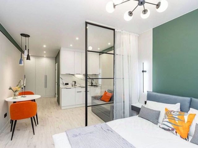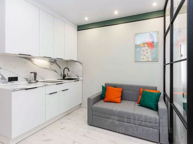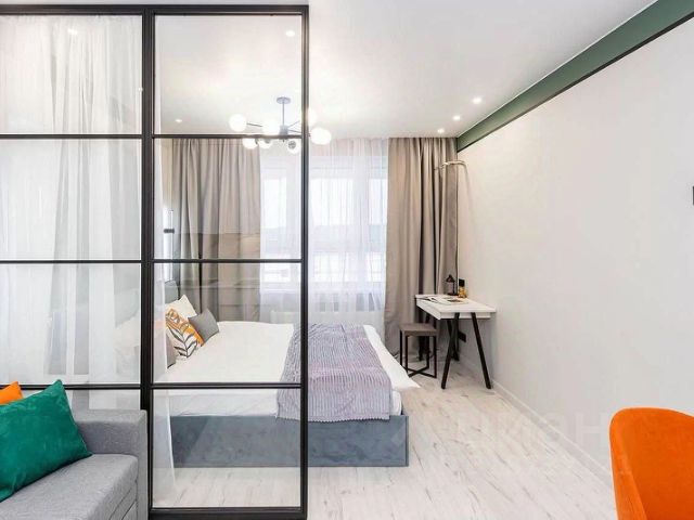 Просторная 1-комн. квартира-студия с предчистовой отделкой в ЖК "Прео" на 2 этаже. Общая площадь: 33.66 кв.м., площадь гостиной 22.36 кв.м., из которых 10 кв.м. выделено под кухонную зону. Все окна выходят на одну сторону. В квартире один совмещенный санузел. Высота потолков 2.7 м.