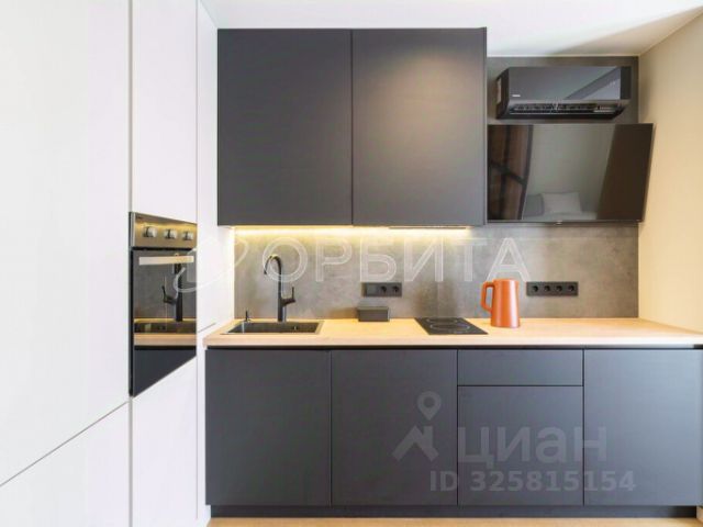 Квартира студия выполнена! по дизайн проекту SVO BUREAU проект реализован в 2023г. Общая площадь 35 м2 в ЖК 'Видный комфорт класса на 17 этаже с замечательным видом из окна. В квартире использованы качественные материалы и вся электрика и сантехника разведена по новому проекту квартиры. Стилистика квартиры минималистична с элементами ваби саби и джапанди. Кухня-гостиная Зона кухни гостиной функциональна и атмосферна. Здесь есть рабочая зона готовки и телевизор, мягкий диван в ткани букле от фабрики divan ру и обеденная группа с легендарными стульями PANTON от фабрики Vitra в черном матовом цвете, самый стильный стол на толстом металлическом подстолье. Все дополняется современной живописью и артом. Кухонный гарнитур укомплектован встроенной техникой ( холодильник марки Hyundai , посудомоечная машина 45 Hotpoint Ariston, варочная панель на 2 конфорки и вытяжка Hyunday), микроволновая печь расположена за фасадом в модуле кухни. Установлен фильтр для воды с минерализатором, располагается в угловом шкафу кухни, удобный доступ. Питьевая вода Подключена к смесителю марки APAM, встроенный дозатор для моющего средства. Гарнитур выполнен из МДФ в матовой пленке цвета Антрацит и Паола. На фартуке керамогранит марки ITALON, коллекция Millenium. В освещении квартиры использовались встроенные светильники Maytoni и светодиодные подсветки в врезных профилях. Натяжной матовый потолок. Кондиционер Daichi 35, телевизоры Hissense. Ламинат марки PERGO коллекция Борджиа, особенность широкий принт доски. Розетки и выключатели марки Schneider electric, коллекция ATLAS DESIGN цвет Карбон. Плинтус под покраску в цвет стен Orac Decor. Спальная Зону спальной отделяет перегородка, выполненная из металлической трубы и стекла, в нише между помещения установлен карниз для штор и есть возможность для более камерного отделения спальной. Спальное место 180*200 матрас Аскона Промо, можно дополнить кроватью или подиумом. Подвесная тумба с откидными фасадами для хранения книг или других предметов, здесь располагается вывод для роутера. За панелями ТВ расположен радиатор с доступом ко всем нужным коммуникациям, за счет решеток в МДФ происходит работа тепла. Портьеры ДимАуты и тюль. С двух сторон у спального места есть розетки и переключатели освещения. Дизайнерское кресло с пухлыми ногами в стиле Джапанди Черного матового цвета. Прихожая По длинной стороне есть шкаф для хранения одежды, выполнены фасады из МДФ в матовой пленке цвет Антрацит. Есть антресоли, штанги, выдвижные ящики 6 шт.,полки для обуви, высокий модуль для хранения пылесоса, гладильной доски. В торце шкафа встроена подсветка для зоны гостиной. На полу керамогранит марки ITALON коллекция Millenium, эпоксидная затирка заколерованная. Большое зеркало напротив шкафа в черной металлической раме, диаметр 150см. Сенсорный включатель с возможностью менять температуру и интенсивность света. Установлен видеодомофон итальянской фабрики BPT Perla, можно просматривать все три точки домофона внизу. Д Квартира-студия (вторичный рынок) в Тюмени.