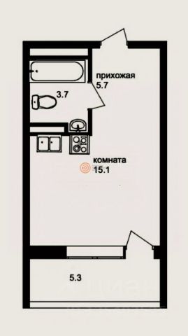 Просторная 1-комн. квартира-студия с предчистовой отделкой в ЖК "Беринг" на 2 этаже. Общая площадь: 34.88 кв.м., площадь гостиной 22.5 кв.м., из которых 5.79 кв.м. выделено под кухонную зону. Все окна выходят на одну сторону. В квартире одна лоджия, один совмещенный санузел. Высота потолков 2.72 м.