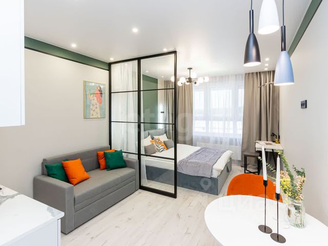 Просторная квартира-студия с дизайнерским ремонтом и мебелью в новом районе Тюмени — Комарово Парк! Стильная квартира-студия площадью 30,5 кв.м на комфортном 2 этаже. Пространство продумано до мелочей: в прихожей — вместительный шкаф для хранения, комната прямоугольной формы удачно зонирована на кухонную и спальную зоны. Благодаря такому решению квартиру можно использовать как полноценную однокомнатную. В кухонной зоне — стильный гарнитур, а в жилой части уже установлены диван и кровать — заезжай и живи! Ремонт выполнен по индивидуальному дизайн-проекту, в актуальных цветах и материалах. Всё, что нужно для комфортной жизни, уже есть. Комарово Парк — это современный и активно развивающийся район с благоприятным соседством. В шаговой доступности — лесопарковая зона, в 8 минутах на авто — новая школа, а в 10 минутах — детский сад. Рядом удобная транспортная развязка и объездная дорога. ???? Звоните и записывайтесь на просмотр — эта квартира достойна вашего внимания! Номер объекта: #1/547675/22044