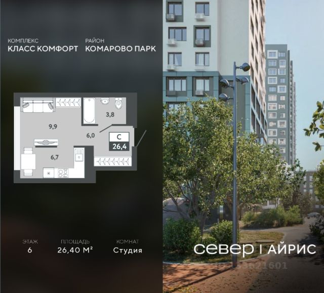 Продаётся квартира площадью 24.30 м2 в жилом комплексе "Айрис". Квартира находится на 3 этаже дома, который будет введен в эксплуатацию в 3 квартале 2027 года. Жилая площадь квартиры 9.50 м2, площадь просторной кухни — 5.80 м2. Среди особенностей планировки — изолированные комнаты с окнами на одну сторону, 1 совмещённый санузел. Жилой комплекс "Айрис" — это: фиджитал-квартал в Тюмени дома высотой от 7 до 25 этажей квартиры с системой "Умный дом" цифровые технологии как элемент благоустройства Срок сдачи — III кв. 2027 Окружение В нескольких минутах ходьбы от дома — парк "Комарово" с волейбольной площадкой, открытым кинотеатром, зонами для барбекю и катком. Неподалеку от Airis находится центр иппотерапии, где можно покататься на лошадях и взять уроки верховой езды. На территории Airis появится собственный парк с прогулочными аллеями. Инфраструктура В 5-10 минутах от квартала открыты 2 детских сада и гимназия. На шопинг можно отправиться в торговые комплексы "Колумб" и "Кристалл" — они находятся недалеко от дома. Благоустройство Уютный двор — приватное пространство для жителей. В беседках можно будет почитать книгу в тишине, а в тени деревьев устроиться на пикник. На крыше многоуровневого паркинга будет лаунж-зона с кинотеатром, баскетбольная площадка и воркаут-пространство, где можно позаниматься с виртуальным тренером — достаточно отсканировать код. Лобби Интерьеры лобби выполнены в пастельных тонах с элементами фиджитал-решений. Для отдыха и ожидания гостей создана лаунж-зона. Также есть гостевые санузлы. Колясочные Возвращайтесь налегке после прогулки с малышом — оставить коляску можно в специальном помещении на первом этаже. Кладовые Для сезонных и габаритных вещей предусмотрены отдельные кладовые на цокольном этаже. В каждом помещении уже проведено электричество и выполнена стяжка пола. Паркинг На территории — два многоуровневых наземных паркинга. Один из них примыкает к домам — из него можно напрямую пройти в парадные. Планировки Планировки квартала — от компактной студии до сити-хауса с собственным палисадником — соответствуют любым жизненным сценариям. Можно выбрать квартиры с террасами и готовыми дизайнерскими интерьерами.