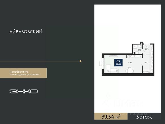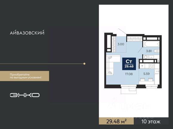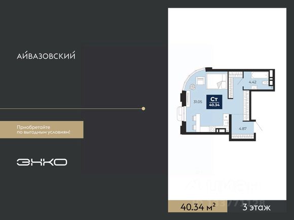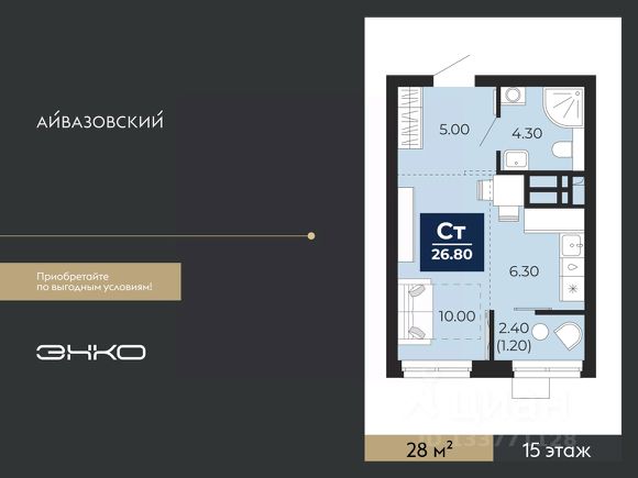 1-комн. квартира-студия с предчистовой отделкой в ЖК "Айвазовский" на 6 этаже. Общая площадь: 29.48 кв.м., площадь гостиной 22.67 кв.м., из которых 5.59 кв.м. выделено под кухонную зону. Все окна выходят на одну сторону. В квартире один совмещенный санузел. Высота потолков 2.7 м. Дом монолитный, многоподъездный, высотой 24 этажа. Квартира находится во 2-й секции в корпусе ГП-13. На этаже 6 квартир. В подъезде 1 пассажирский и 1 грузовой лифт. Окончание строительства - 4 квартал 2027 года. Оформление сделки по договору долевого участия. Новый жилой район располагается в живописном месте на берегу Туры в центральной части города. Принципиально новое пространство для жизни в центре современного города для тех, чьи мечты сбываются, кто нацелен на постоянный рост, перемены к лучшему для себя и своих близких. Каждая деталь ЖК "Айвазовский" вдохновляет и заряжает на новые свершения: авторская архитектура, сбалансированная продуманная инфраструктура, дизайнерские дворы со спортивными и детскими площадками, парковые зоны с фонтанами, водный канал, украшающий центральный прогулочный маршрут района и многое другое. В 2019 года проект стал лауреатом престижной премии Urban Awards 2019 в номинации "Лучший строящийся региональный жилой комплекс бизнес-класса". Главная особенность Айвазовский - соседство разных архитектурных школ в рамках одного дома. Изысканная классика, выразительная эклектика и оригинальный модерн - жить в одном из таких домов настоящий повод для гордости. Айвазовский это идеальное сочетание комфорта, технологий и развитой инфраструктуры. Вход в подъезд возможен с улицы и со двора. Отправляясь на работу или за покупками, жители могут выйти с внешней стороны дома, а для прогулки с ребенком со стороны двора. Экологически чистые материалы и энергосберегающие технологии, качественное освещение общественных зон, видеонаблюдение по всей территории жилого района (в том числе в подъездах, лифтах и в подземном паркинге), закрытые дворы с доступом только для жителей Айвазовский. Часть домов в Айвазовский будут оснащены подземным паркингом. Востребованный в нашем климатическом поясе формат хранения автомобилей защитит собственность владельца в любое время года. Аккредитация в банках: ПАО Банк "ВТБ", "Сбербанк России", ОАО "Альфа-Банк", ПАО "Газпромбанк", ПАО "Промсвязьбанк" и других. #ZTODv7 Продам квартиру-студию квартир-студий в Айвазовский в Тюмени.