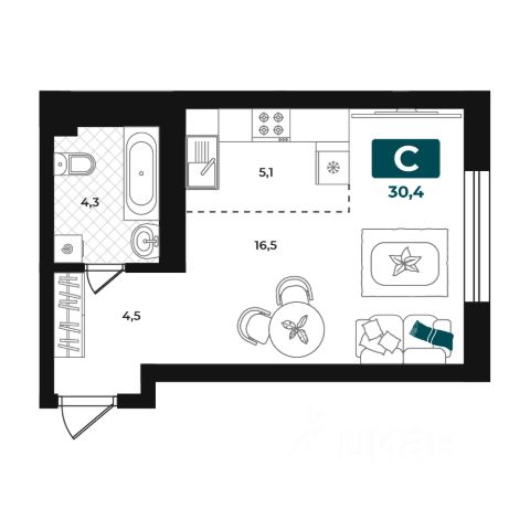 Квартира располагается в ГК "Чистые Пруды" от "Паритет девелопмент". Это флагманский проект компании в Тюмени. Расположение вдали от шумных улиц и оживленного центра создает ощущение жизни на природе и окружает тишиной и спокойствием. Есть вся необходимая социальная и коммерческая инфраструктура: магазины и сфера услуг на первых этажах. Школы, сады, поликлиника, парки в шаговой доступности. Квартал строится в районе Новой Лесобазы. Рядом выезд на объездную, что существенно экономит время. Поездка до центра города на автомобиле занимает 15-20 минут. Городские кварталы "Чистые Пруды"сформирован из домов переменной этажности и многоуровневых паркингов. Ввод 1 очереди строительства запланирован на II кв. 2028 года. Всё благоустройство квартала представлено двумя функциональными зонами: приватная внутри дворовая и общественная. Каждый закрытый двор имеет выход на единую променадную зону - бульвар. Концепция благоустройства основана на принципе модульности, что формирует основную идею приватности. Приватность проекта подчеркивает его особенный климат внутри. Модульное благоустройство позволит максимально эффективно использовать пространство двора и удовлетворить потребности различных категорий жителей. В квартирах базово выполнена улучшенная черновая отделка, которая включает в себя: выровненные стены, стяжка пола с шумоизоляцией, горизонтальная разводка отопления, установлены счетчики с телеметрией, окна с 5-камерным профилем и надежные входные двери. При желании можно добавить ремонт от застройщика и включить его в стоимость ипотеки, что позволит сэкономить на стройматериалах и переехать сразу после получения ключей. Характеристики квартиры: этаж - 2 количество комнат - 1 номер помещения - 10 площадь квартиры - 33,4 кв.м Гармоничные пропорции и большие окна наполняют пространство светом, создавая уютную атмосферу. Умное зонирование позволяет удобно организовать как рабочую, так и жилую зоны, что особенно важно для современных жителей. Санузел спроектирован с учетом всех потребностей: здесь есть ванна и место для стиральной машины. Каждый метр квартиры используется с максимальной эффективностью, что делает эту планировку отличным выбором для тех, кто ценит комфорт и удобство.