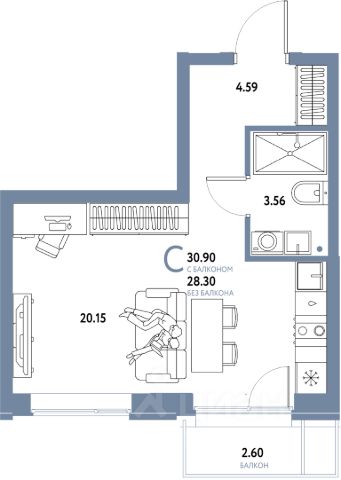 Студия с отличными видовыми характеристикамив - ЖК Домашний.